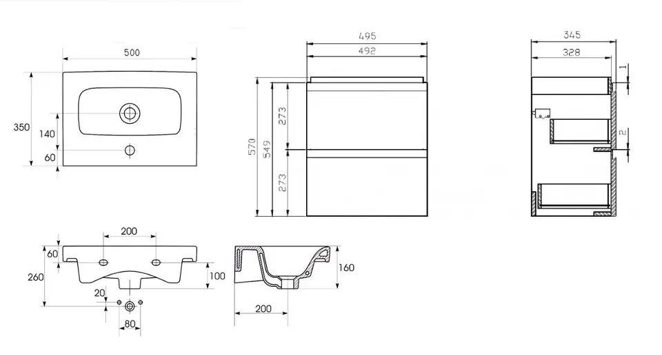Hängeschrank mit Waschbecken Moduo Slim 50