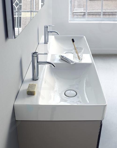 "Duravit Durasquare Waschtische haben makelloses Design, hervorragende Verarbeitung und Langlebigkeit. Die quadratische oder rechteckige Form zieht die Aufmerksamkeit auf sich und macht das Waschtisch zum dominierenden ästhetischen Element. Das dünne DuraCream-Material hat eine hohe Festigkeit und eine glänzende Oberfläche, an der Flecken nicht haften. Es gibt die Wandinstallation sowie die Möbelinstalation. Das Duravit DuraSquare-Programm bietet Ihnen mehrere Dutzend Produkte, aus denen Sie genau nach Ihren Anforderungen an Form, Abmessungen und Anzahl der Montagelöcher auswählen können."