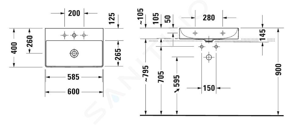 "Duravit Durasquare Waschtische haben makelloses Design, hervorragende Verarbeitung und Langlebigkeit. Die quadratische oder rechteckige Form zieht die Aufmerksamkeit auf sich und macht das Waschtisch zum dominierenden ästhetischen Element. Das dünne DuraCream-Material hat eine hohe Festigkeit und eine glänzende Oberfläche, an der Flecken nicht haften. Es gibt die Wandinstallation sowie die Möbelinstalation. Das Duravit DuraSquare-Programm bietet Ihnen mehrere Dutzend Produkte, aus denen Sie genau nach Ihren Anforderungen an Form, Abmessungen und Anzahl der Montagelöcher auswählen können."