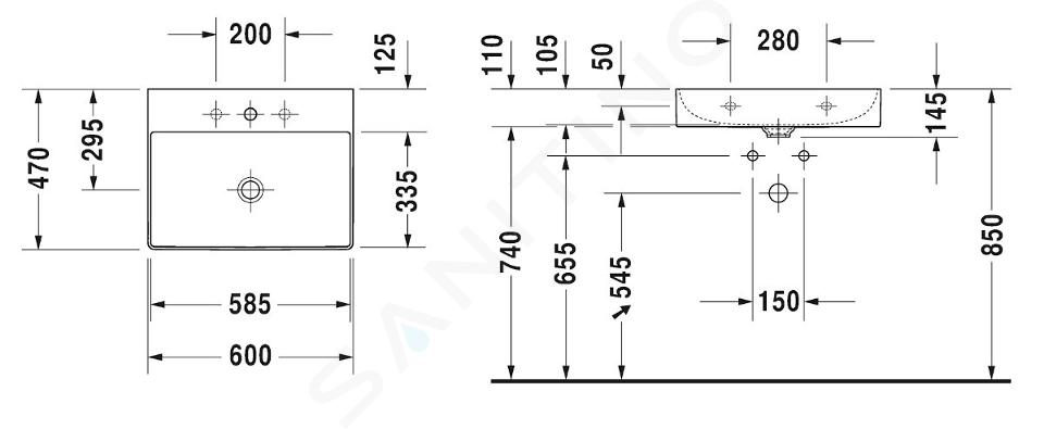 Wand-Waschtisch Abmessungen: 600 x 470 x 145 mm Material: DuraCeram®... Vollständige Beschreibung anzeigen