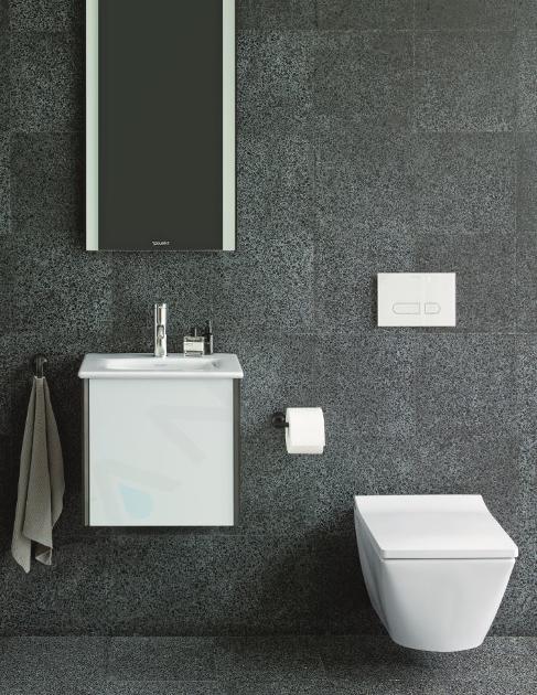 Die sparsame Version der Duravit Toilette mit einem geringeren Spülvolumen von 4,5 l Wasser erzielt hohe Hygieneergebnisse.
