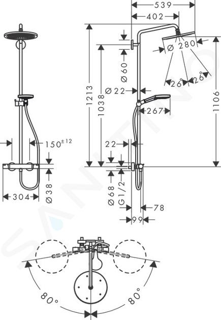 Das Wand-Duschsystem Showerpipe 280 enthält Kopfbrause Größe des... Vollständige Beschreibung anzeigen