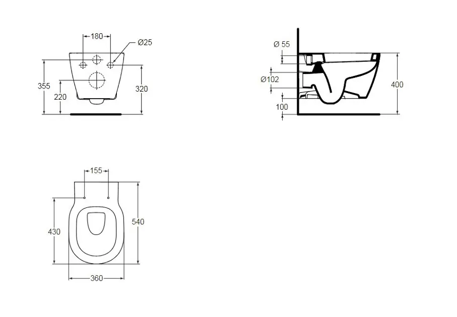 Hänge-WC Connect Farbe: Weiß Material: Keramik Abmessungen 360 x 540 x... Vollständige Beschreibung anzeigen