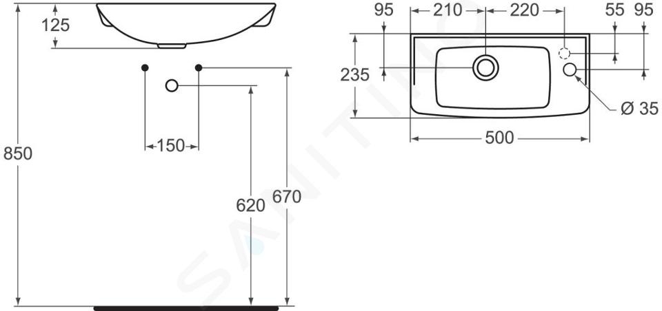 Keramik-Waschtisch ohne Überlauf Abmessungen: 500 x 235 x 125 mm... Vollständige Beschreibung anzeigen