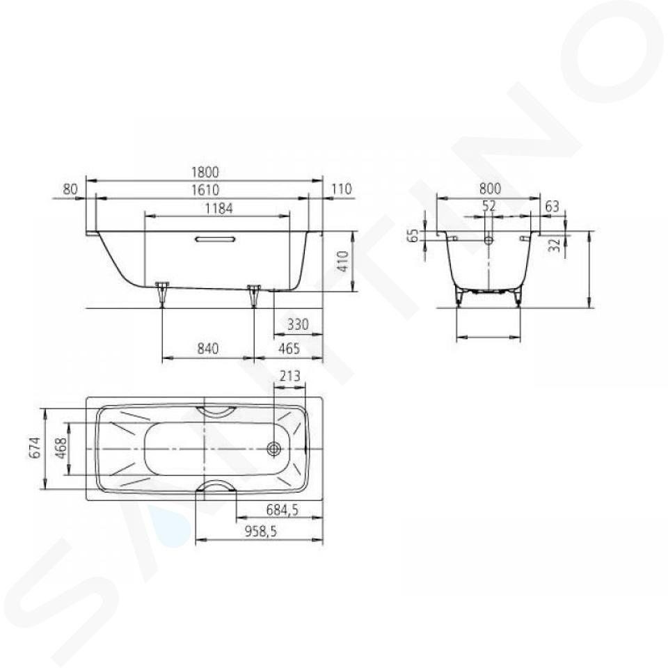 Badewannenfüße, Badewannensiphon und Griffe sind nicht enthalten.