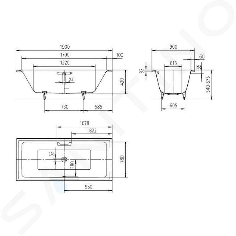 Wannenfüße, Griff und Geruchsverschluss sind nicht enthalten.