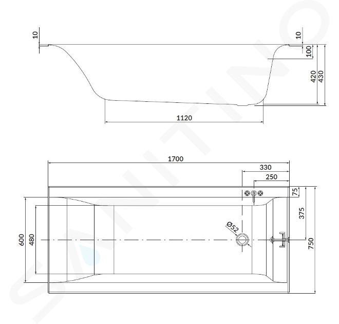 Rechteck-Badewanne Abmessungen: 1700 x 750 mm Material: Sanitäracryl... Vollständige Beschreibung anzeigen