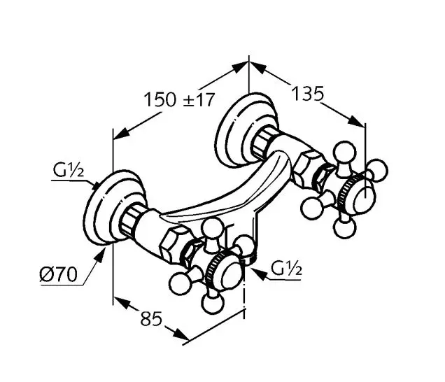 Kreuzgriff-Duscharmatur, Wandmontage Kreuzgriffe Wandmontage... Vollständige Beschreibung anzeigen