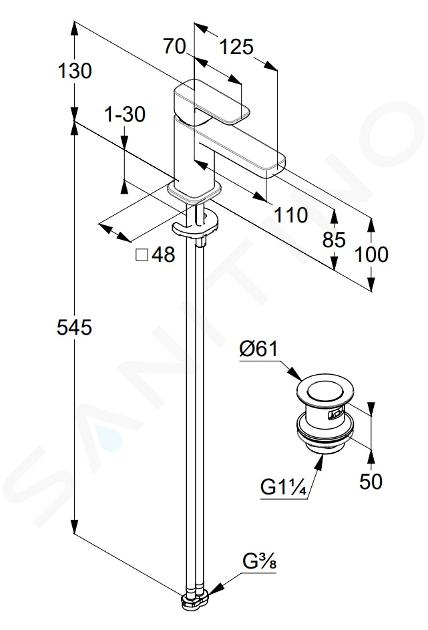 Waschtischmischer für Standmontage, mit Ablaufgarnitur
