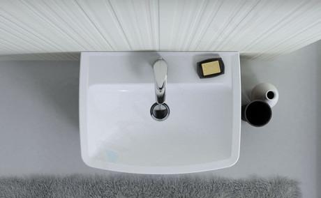 Eckiges Waschbecken, kombinierbar mit Unterschrank