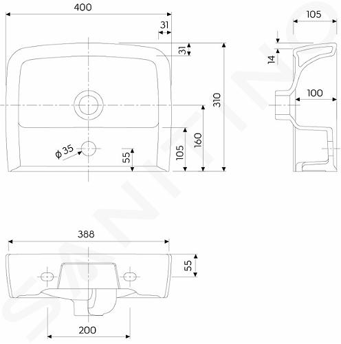 Eckiges Waschbecken, kombinierbar mit Unterschrank Abmmessungen: 400 x... Vollständige Beschreibung anzeigen