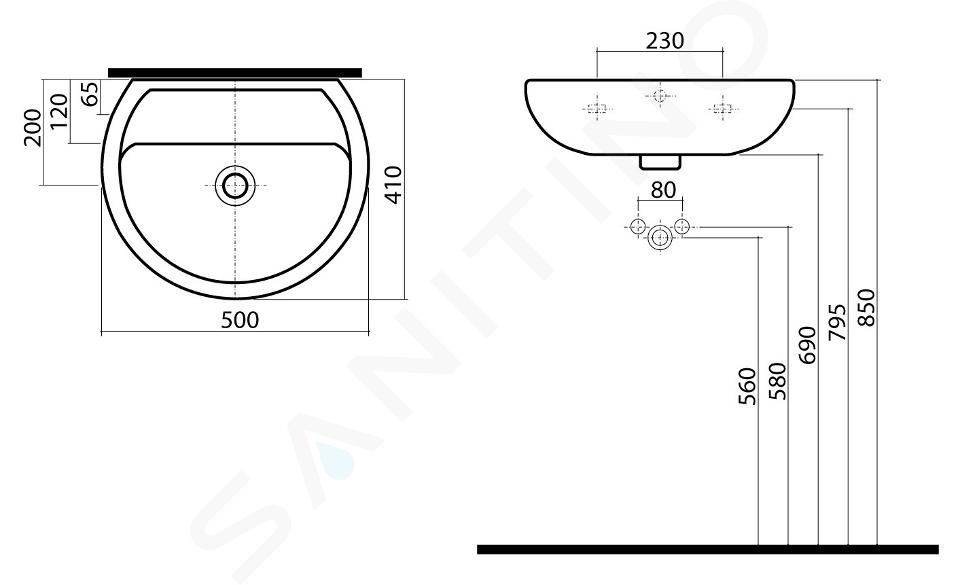 Waschtisch, kombinierbar mit Halbsäule Abmessungen: 500 x 410 mm ohne... Vollständige Beschreibung anzeigen