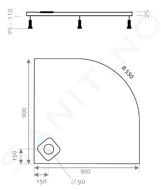 LitLUX Viertelkreisduschwanne Abmessungen: 900 x 900 mm Höhe: 25 mm... Vollständige Beschreibung anzeigen