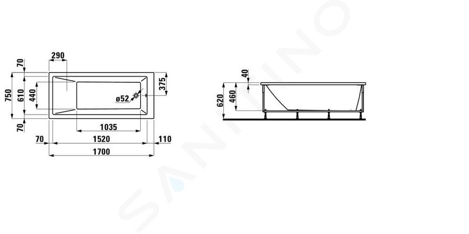 Linke Eckbadewanne mit Frontplatte, rechtes Modell, mit Konstruktion