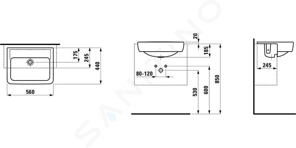 Halbeinbauwaschtisch ohne Hahnloch, mit Überlauf Breite: 560 mm Tiefe:... Vollständige Beschreibung anzeigen