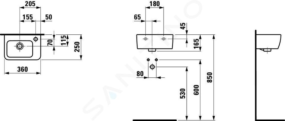 Handwaschbecken, mit 1 Hahnloch rechts, mit Überlauf Breite: 360 mm... Vollständige Beschreibung anzeigen