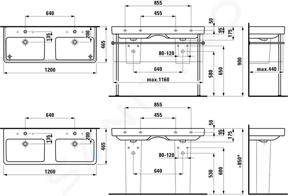 Doppelwaschtisch mit 3 Löchern für 2 Batterien, mit Überlauf breite:... Vollständige Beschreibung anzeigen