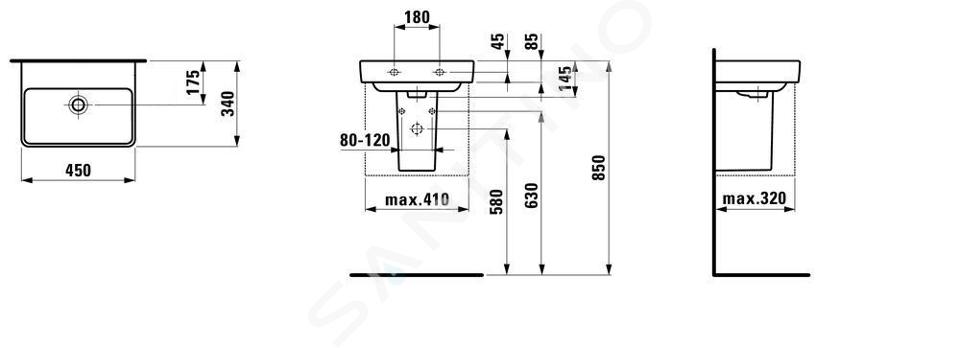 Handwaschbecken ohne Hahnloch, ohne Überlauf Breite: 450 mm Tiefe: 340... Vollständige Beschreibung anzeigen