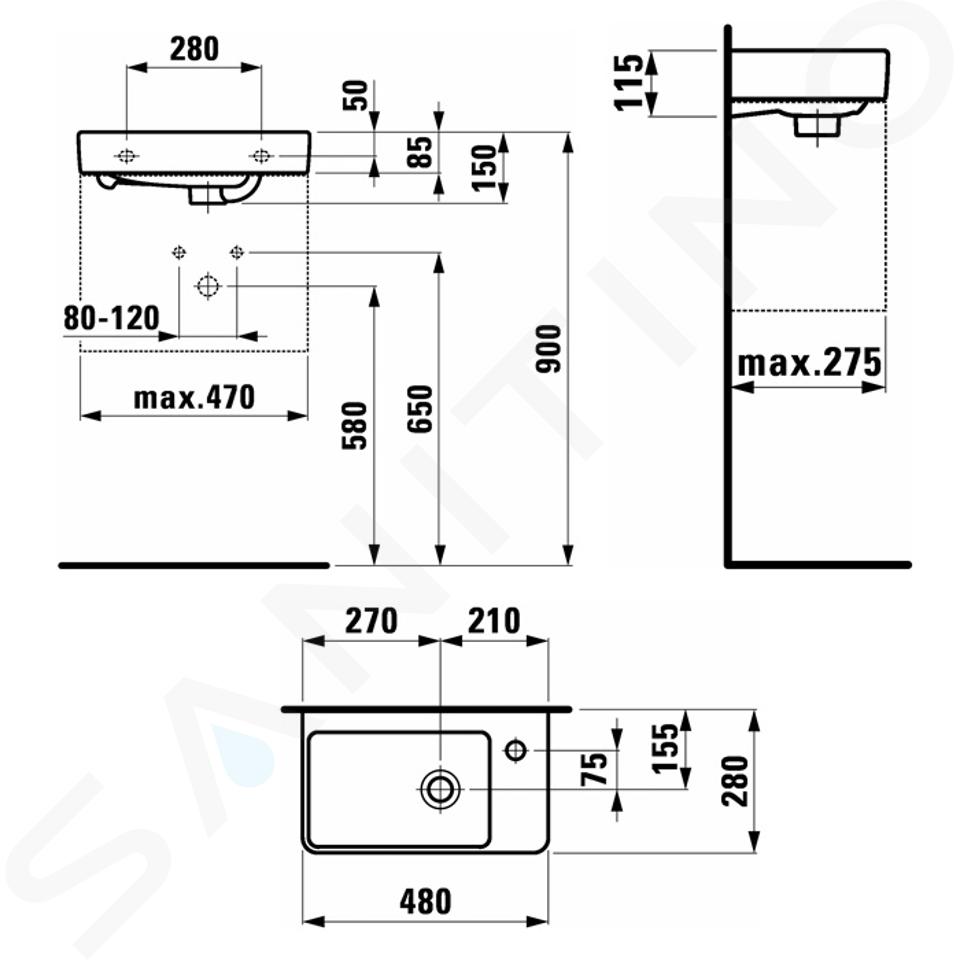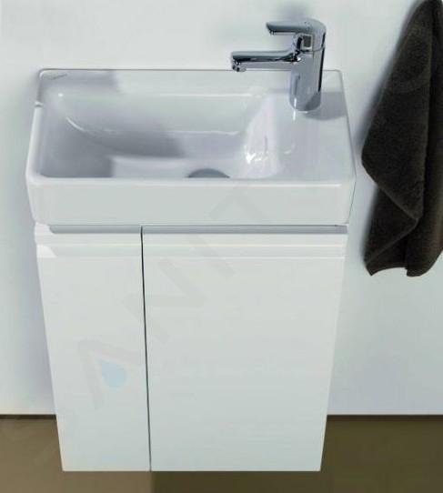 Asymmetrisches Handwaschbecken rechts, mit Hahnloch, mit Überlauf