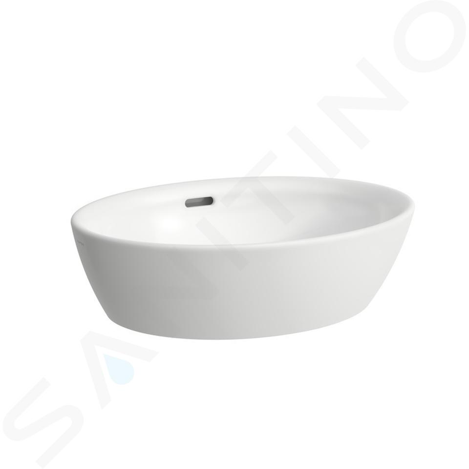 Waschbecken ohne Hahnloch, mit Überlauf.