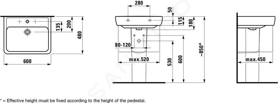 Waschtisch mit 1 Hahnloch, mit Überlauf Breite: 600 mm Tiefe: 480 mm... Vollständige Beschreibung anzeigen