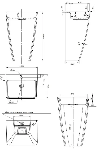 Waschtisch freistehend, ohne Überlauf Farbe: weiß glänzend Material:... Vollständige Beschreibung anzeigen