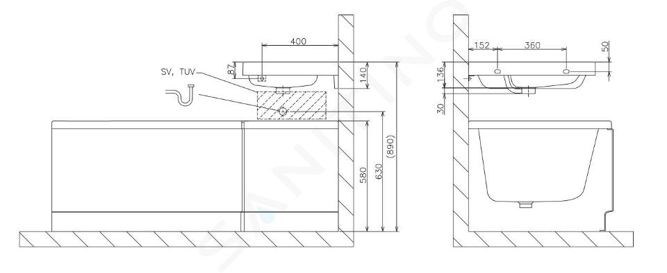 Hängender Eckwaschtisch mit Überlauf