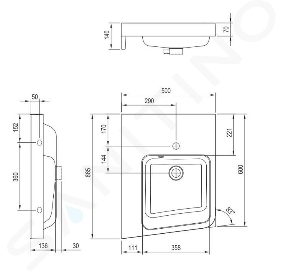 Hängender Eckwaschtisch mit Überlauf Abmessungen: 550 x 665 mm... Vollständige Beschreibung anzeigen