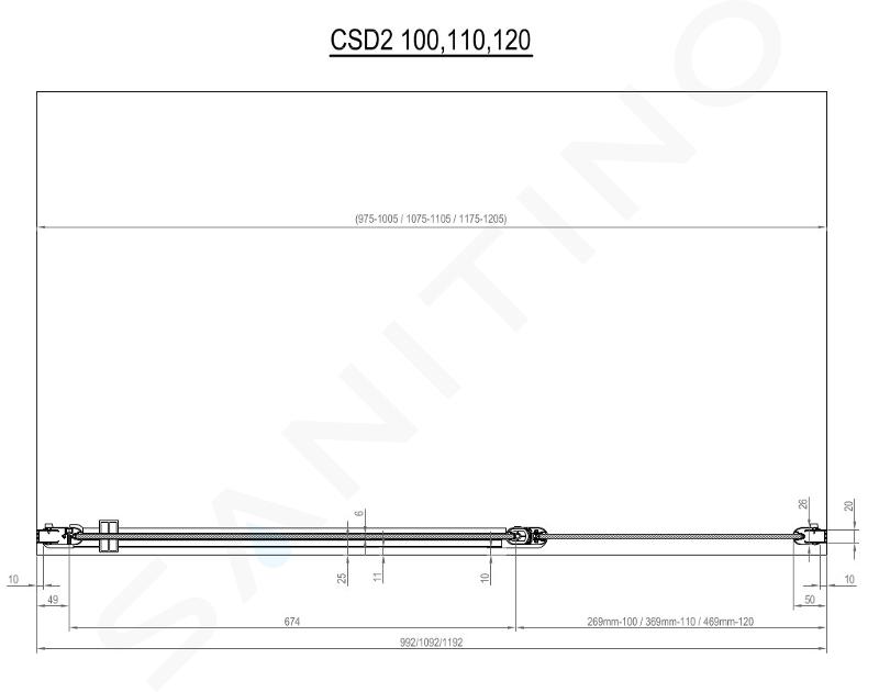 Duschtür CSD2-120, zweiteilig Einbaumaße: 1175–1205 mm Höhe: 1950 mm... Vollständige Beschreibung anzeigen