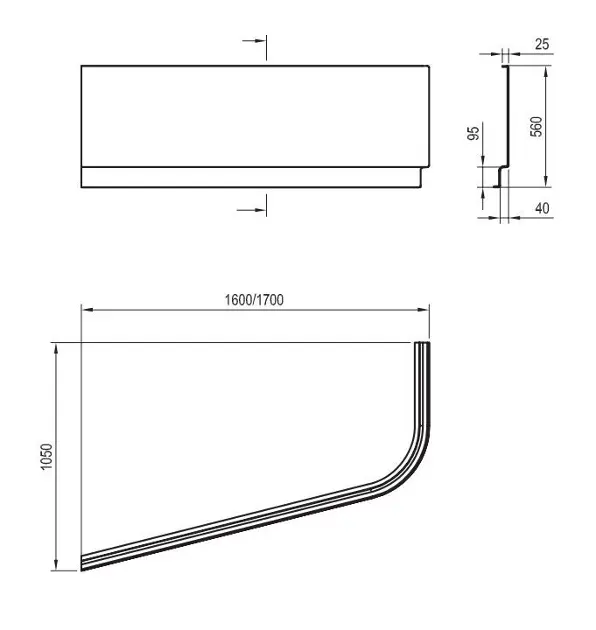 Asymmetrische Frontschürze Abmessungen: 1700 x 1050 mm, Höhe: 560 mm... Vollständige Beschreibung anzeigen