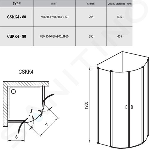 Viertelkreis-Duschecke CSKK4-90 Einbauabmessungen: 880-900 x 880-900... Vollständige Beschreibung anzeigen