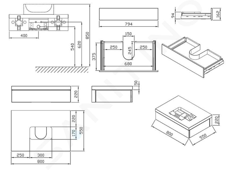 Wand-Waschtischunterschrank Abmessungen: 800 x 550 x 220 mm Material:... Vollständige Beschreibung anzeigen