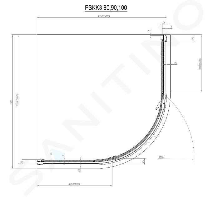 Viertelkreis-Duschabtrennung PSKK3-100, mit Schwenktür