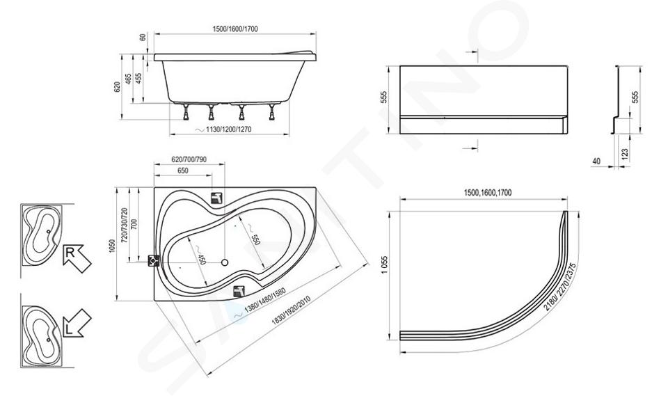 Asymmetrische Badewanne Rosa II P Abmessungen: 1700 x 1050 mm Material... Vollständige Beschreibung anzeigen