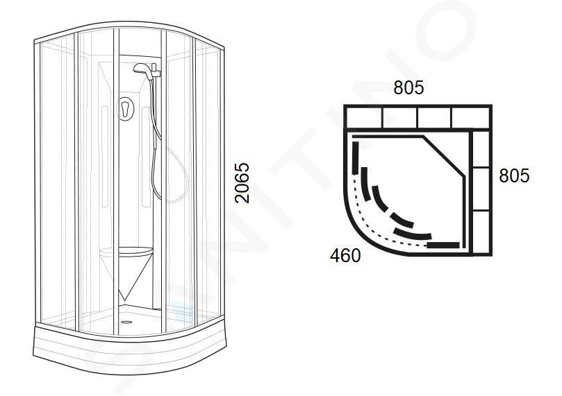 Viertelstöckige Duschbox ASBKP6-80 Gestellfarbe weiß Füllung: Klarglas... Vollständige Beschreibung anzeigen
