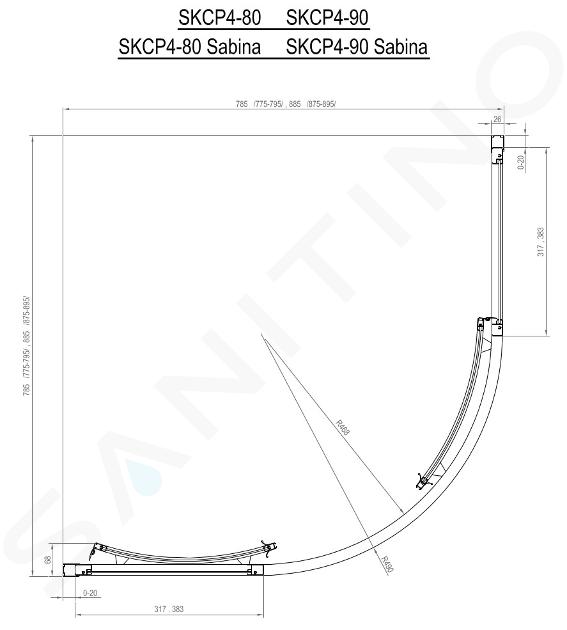 Viertelkreis-Duschabtrennung SKCP4-90 Sabina, mit Schiebetür