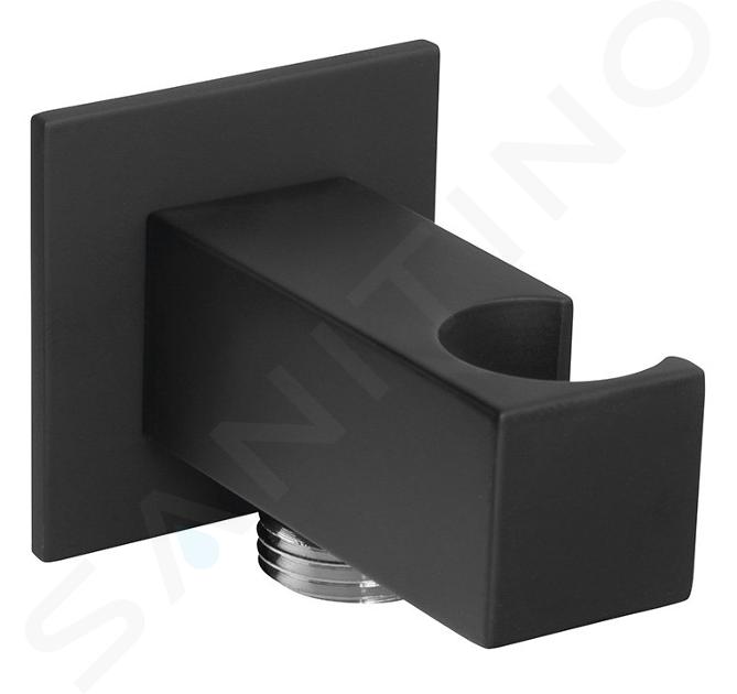 Brausehalter mit Auslauf, eckig Farbausführung Schwarz matt... Vollständige Beschreibung anzeigen