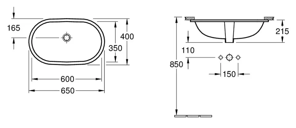 Einbau-Waschtisch für den Einbau von unten für Armaturen mit hohem... Vollständige Beschreibung anzeigen