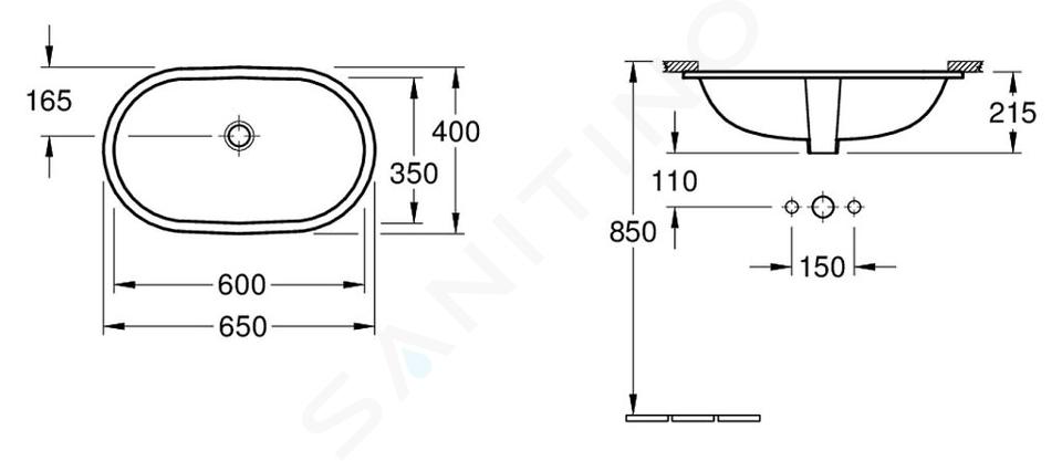 Einbau-Waschtisch für den Einbau von unten für Armaturen mit hohem... Vollständige Beschreibung anzeigen